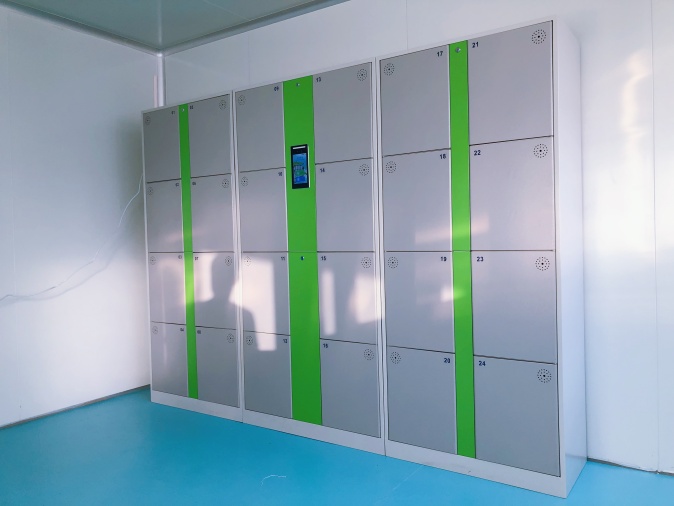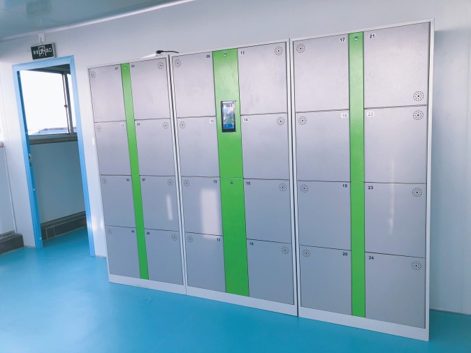 用戶采用的是隨機分配版本的人臉識別系統(tǒng),員工僅需到控制面板前點擊存入物品,系統(tǒng)便會識別員工人臉后隨機彈開一個箱門。